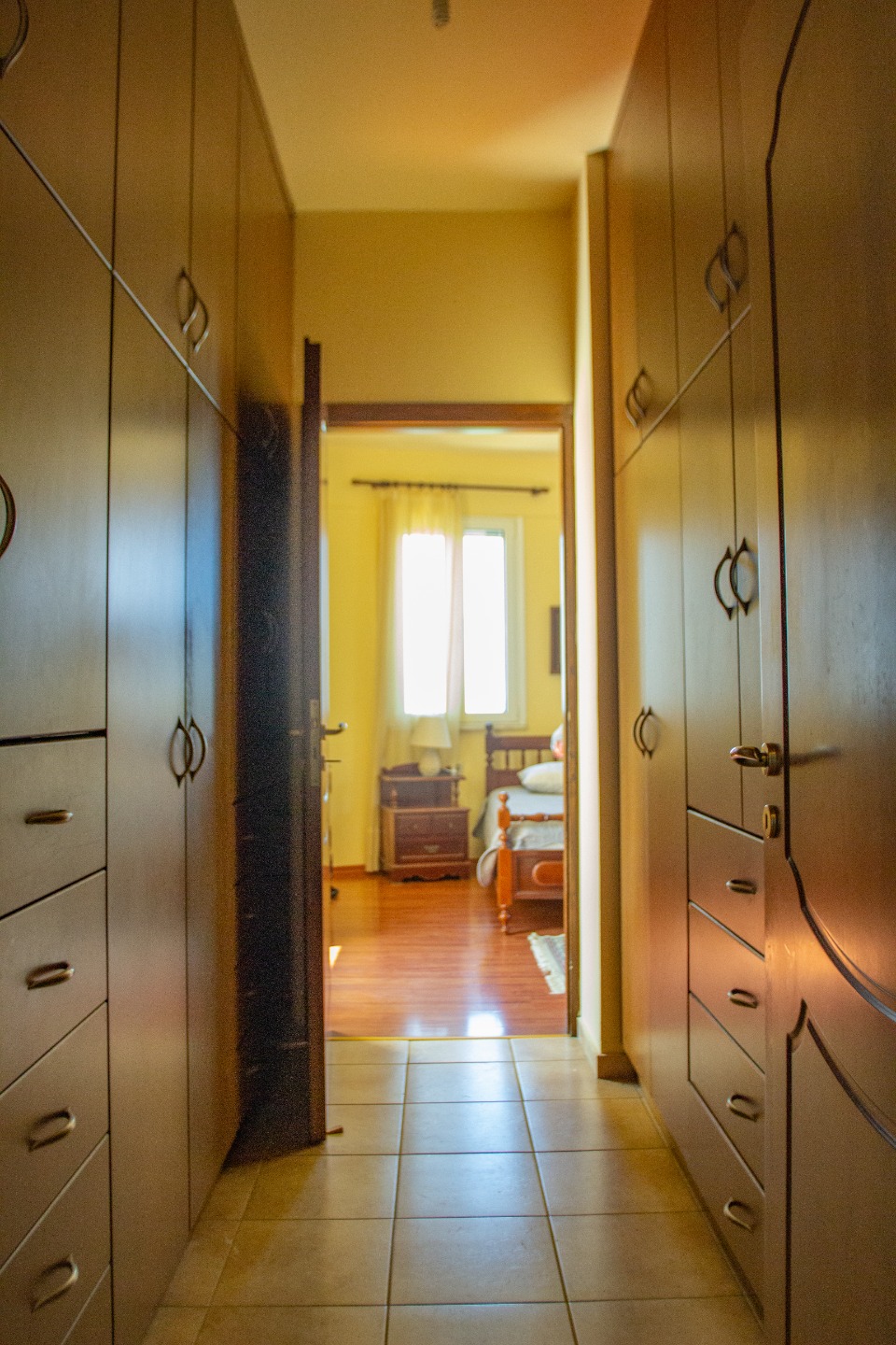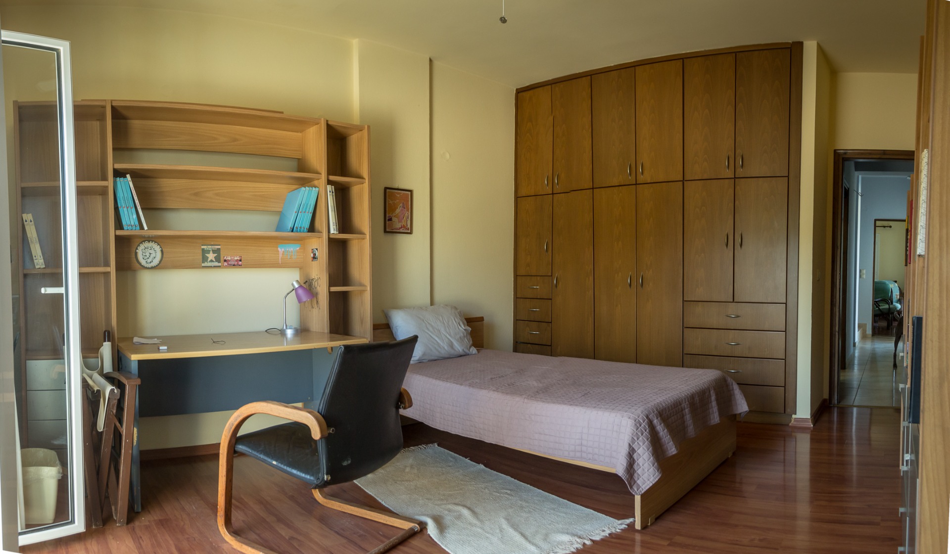 - 3o επίπεδο (1ος όροφος, εμβαδού 93 τ.μ.) : 3 Υ/Δ, 2 μπάνια και φαρδύ διάδρομο με ντουλάπες .