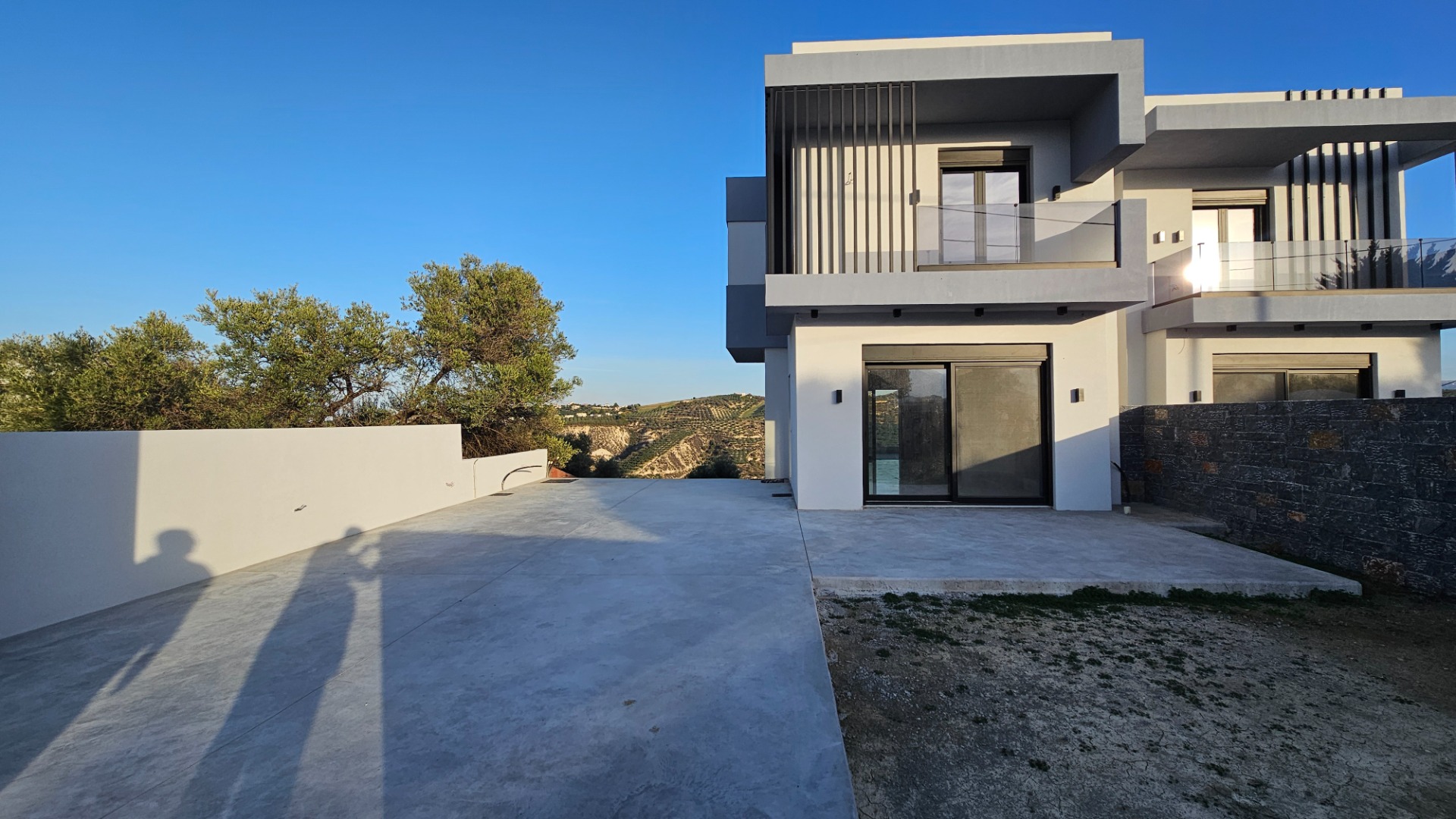 ΠΑΓΝΗ ΗΡΑΚΛΕΙΟΥ ΚΡΗΤΗΣ (4 χλμ. από το ΠΑΓΝΗ προς τον οικισμό Σταυράκια και 11 χλμ. από το κέντρο της πόλης του Ηρακλείου), πωλείται νεόδμητη μονοκατοικία-μεζονέτα 3 επιπέδων (αποπερατωμένη) συνολικού εμβαδού 170 τ.μ., με ανεμπόδιστη, πανοραμική θέα θάλασσα, βουνά και την πόλη του Ηρακλείου, σε οικόπεδο εμβαδού 750 τ.μ. .