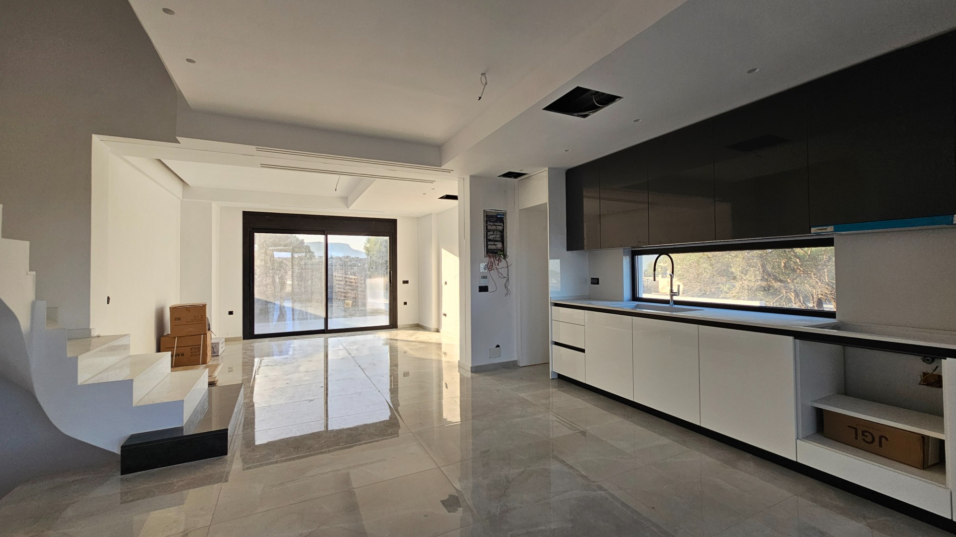 Διαθέτει μεγάλες βεράντες, κήπο, χώρους στάθμευσης αυτοκινήτων με δυνατότητα εγκατάστασης φόρτισης ηλεκτρικών αυτοκινήτων, ηλεκτρική γκαραζόπορτα, ξεχωριστή εξωτερική πόρτα εισόδου επισκεπτών, πέτρινα τοιχία, εξωτερική τοιχοποιία άριστης ποιότητας με θερμο-υγρομόνωση (κέλυφος), αντλία θερμότητας για ψύξη και θέρμανση με ανεξάρτητο έλεγχο χρήσης για κάθε όροφο και κάθε δωμάτιο, θερμο-ηχομονωτικά κουφώματα υψηλής ποιότητας, με τριπλά ενεργειακά τζάμια και σίτες, ηλεκτρικά παντζούρια σε όλα τα εξωτερικά κουφώματα, ηλιακό θερμοσίφωνο, εγκατάσταση για συναγερμό (με μαγνητικές επαφές στα κουφώματα, ανιχνευτές κίνησης, εξωτερικές κάμερες με καταγραφικό).