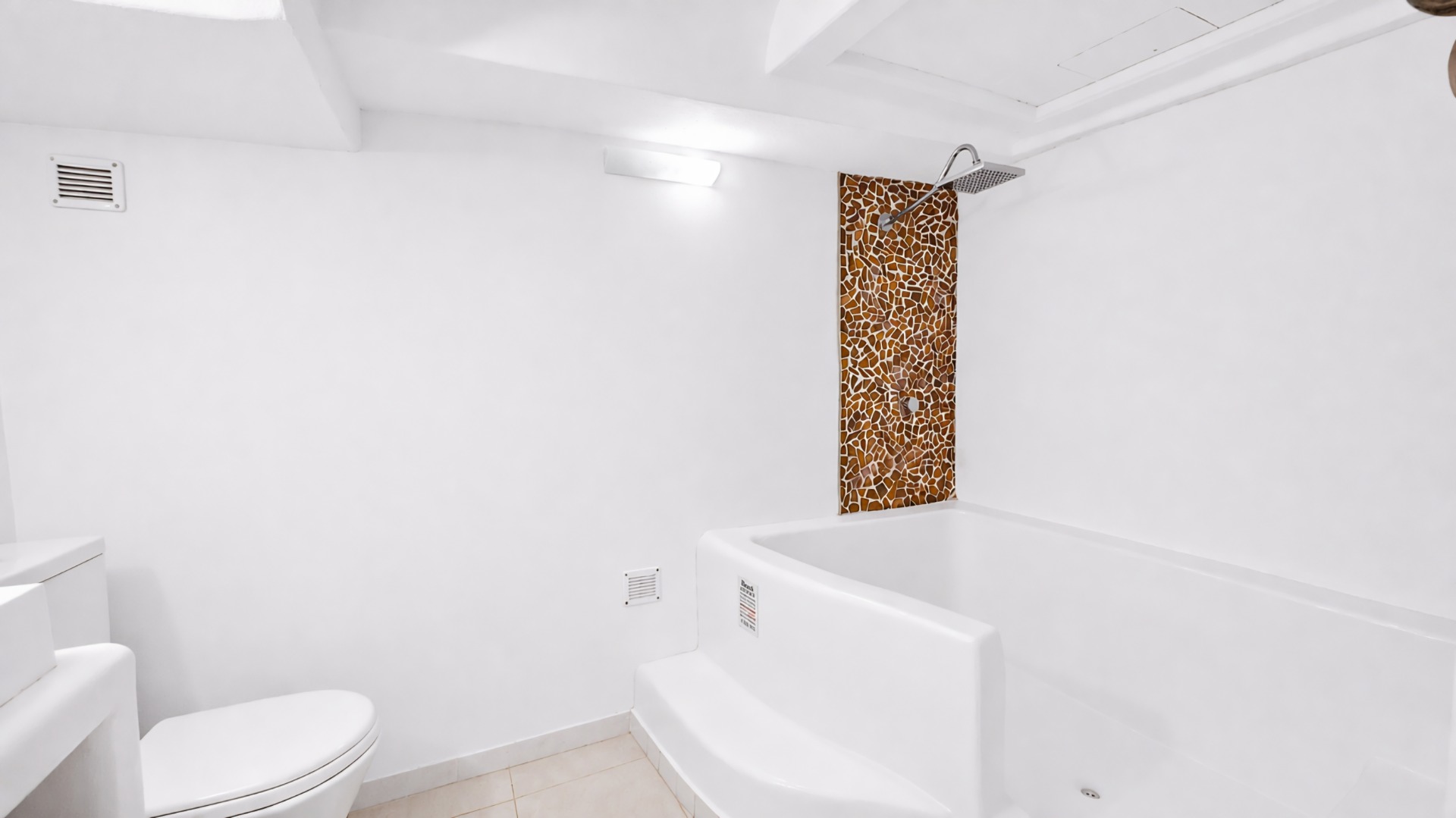 Στο 1ο όροφο έχει στεγασμένο καθιστικό με κουζίνα εμβαδού 25 τ.μ. και πολύ μεγάλη βεράντα με τζακούζι και εξωτερικό ντουζ .
