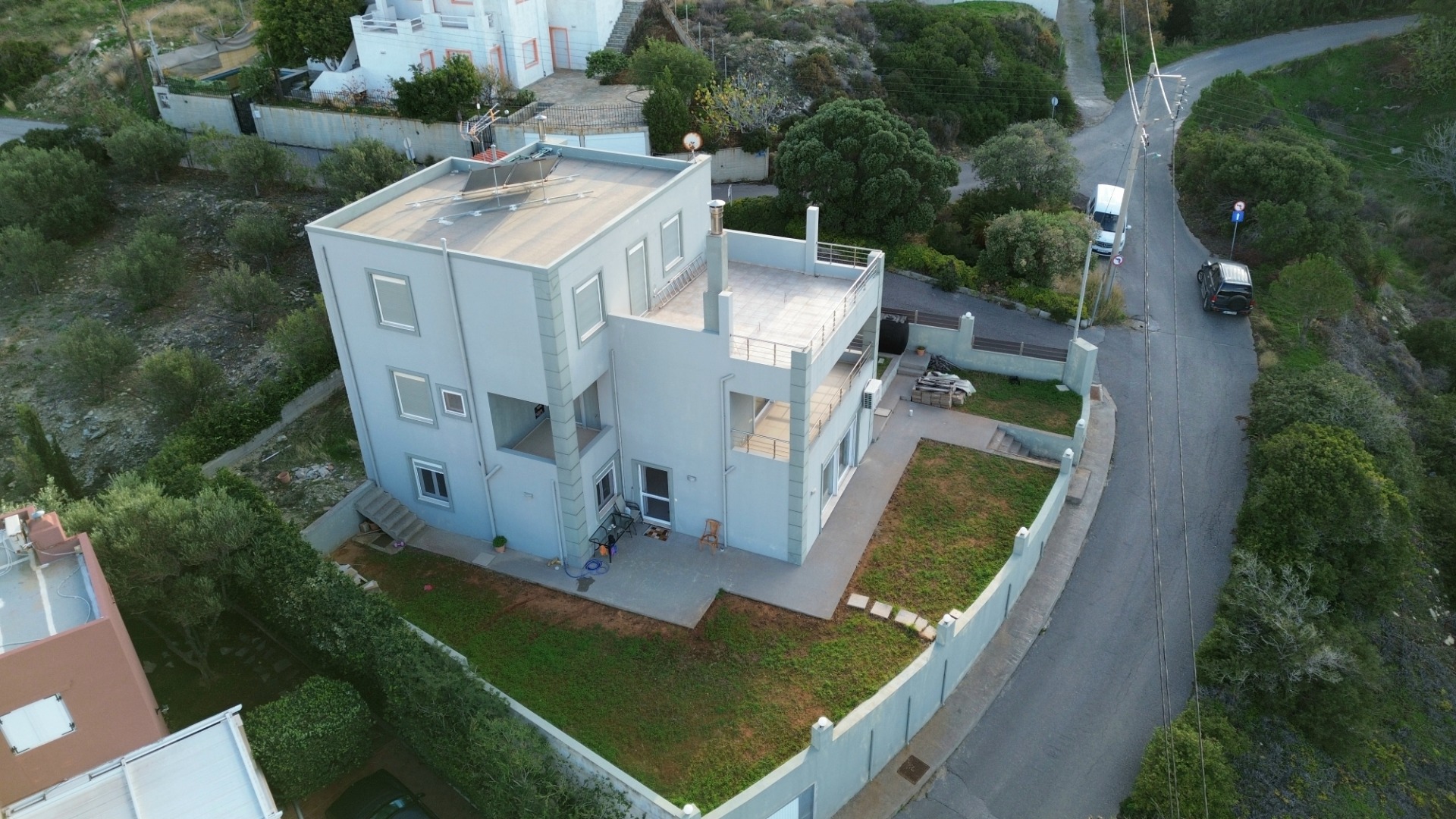 Lygaria, Ammoudi, in a privileged location offering unobstructed sea and mountain view, near the Theseus residential development and only a five-minute drive from Made Beach, a corner, three-storey, detached property with a total area of 220 sq.m., built in 2006, is offered for sale. The property is situated on a 500 sq.m. plot.
