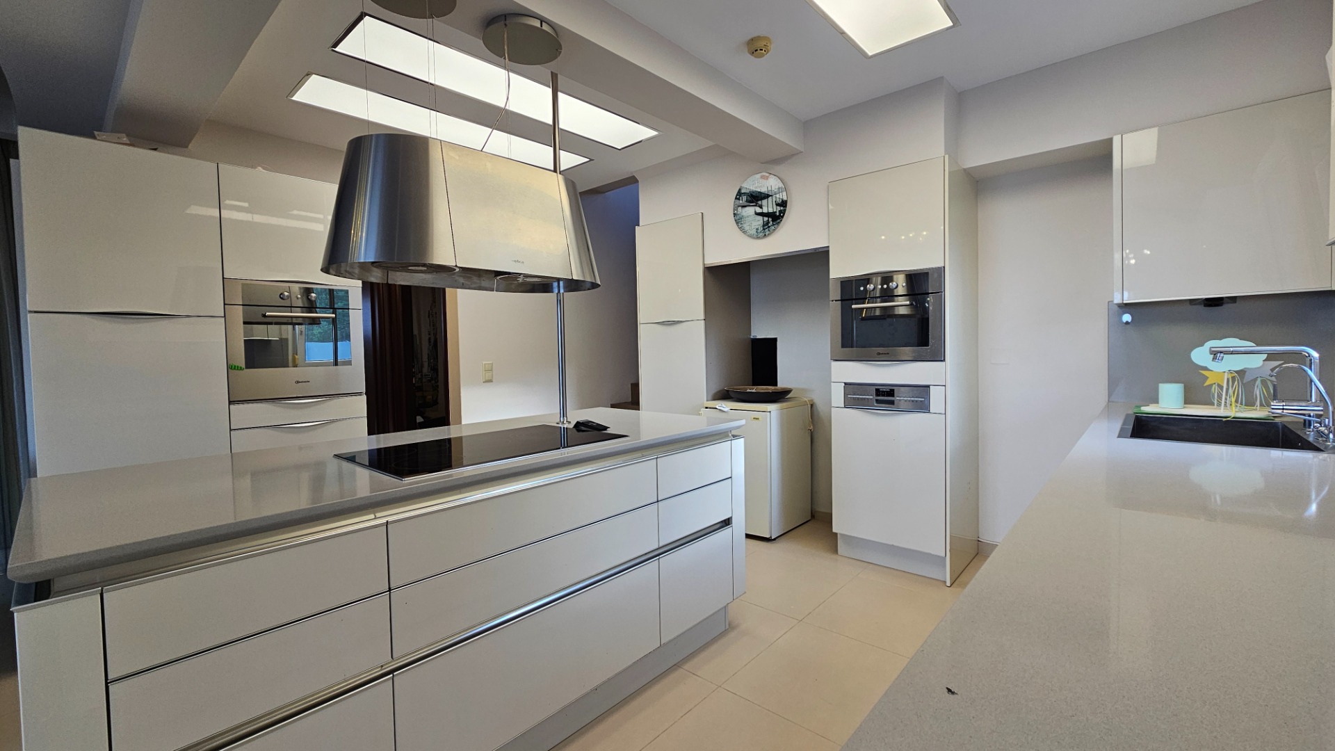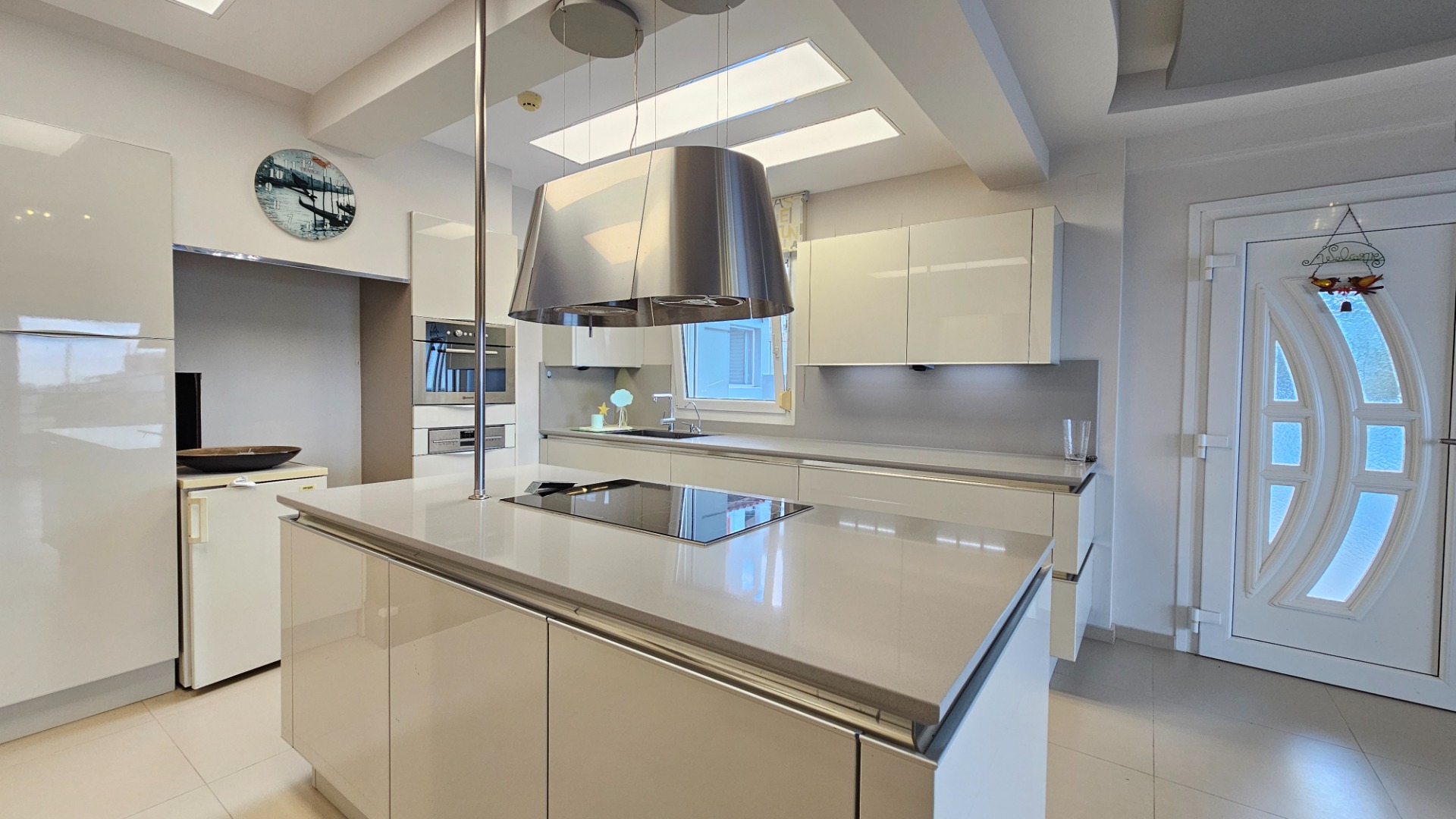 Additional features include: autonomous underfloor heating, a solar water heater, aluminum window frames with double glazing and insect screens, a water softener and desalination system, as well as two spacious enclosed garages.