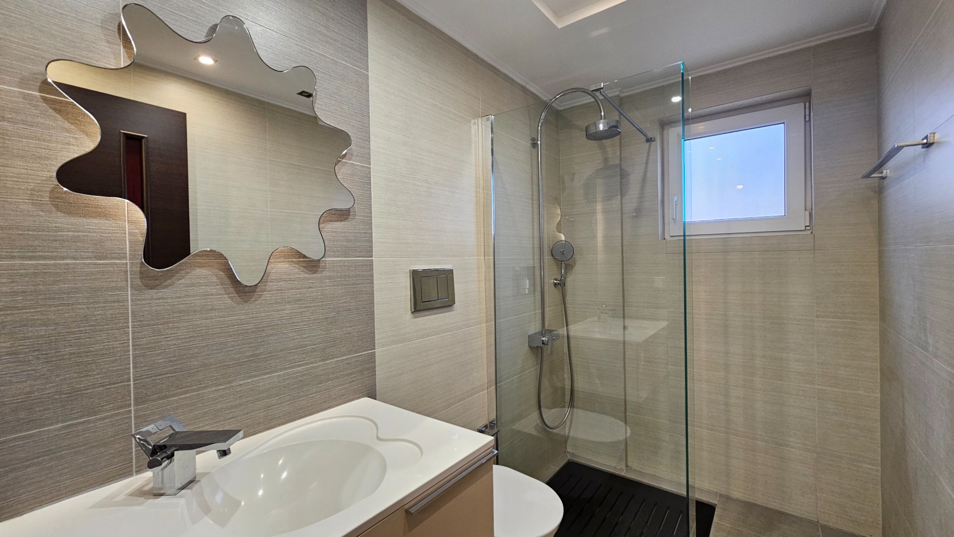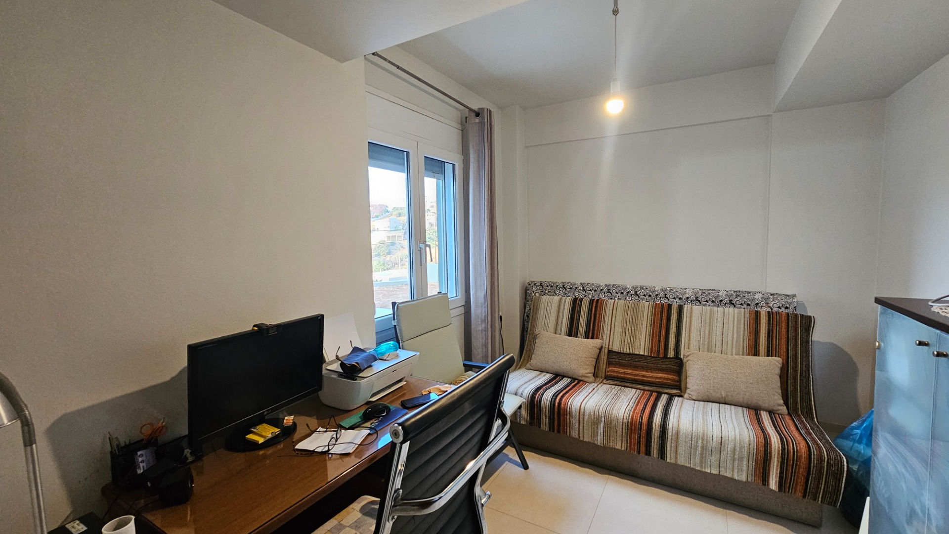 - Ground-floor apartment (90 sq.m.) with an independent entrance and a surrounding courtyard. It comprises two bedrooms, a spacious living-dining area, a kitchen with a storage room, and a bathroom.